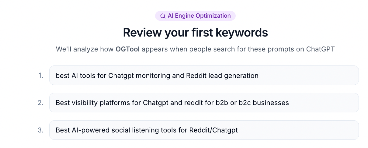 Setup Chatgpt/Reddit keywords during onboarding or in keywords